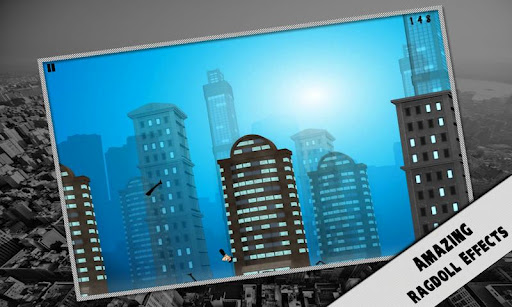 Use your ropes to swing a destructible ragdoll from one skyscraper to the others. You have full control over your ropes, touch on a building to throw your rope there, touch again to release it and fly through the sky. Perform various kind of jumps to get achievements, attach to flying planes or ballons and try to beat your friends or all other players by competing with them for the best score. Rope'n'Fly - From Dusk v1.0 apk